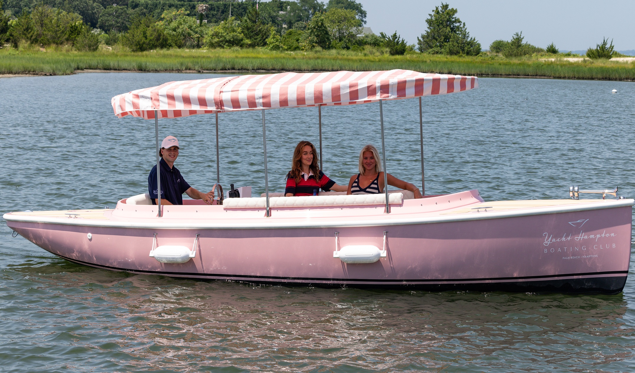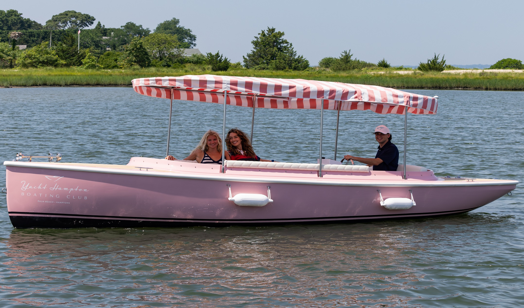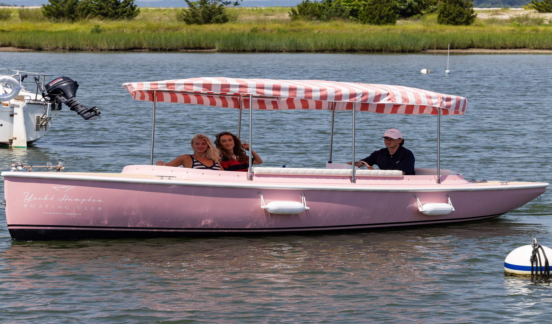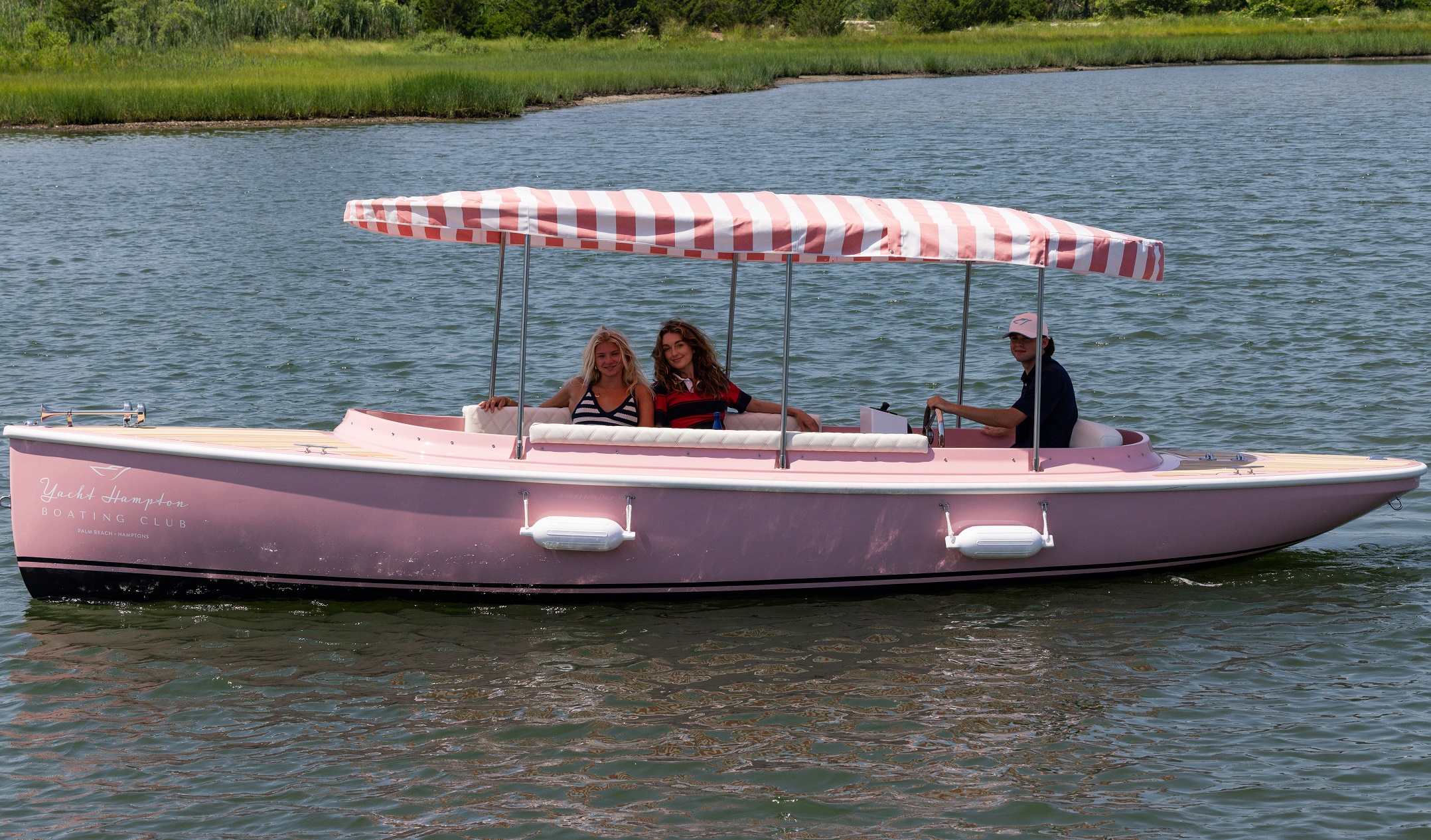 The 22’ 2025 Yacht Hampton Electric boat is a stunning example of modern luxury combined with eco-conscious design. This watercraft boasts an iconic pink exterior, with a spacious deck layout that provides ample seating for passengers to relax and converse while enjoying the serene beauty of the Sag Harbor waters. The electric propulsion technology utilized in the 217 Fantail ensures a quiet and smooth ride, allowing passengers to glide effortlessly through the water without disturbing the peace of their surroundings.