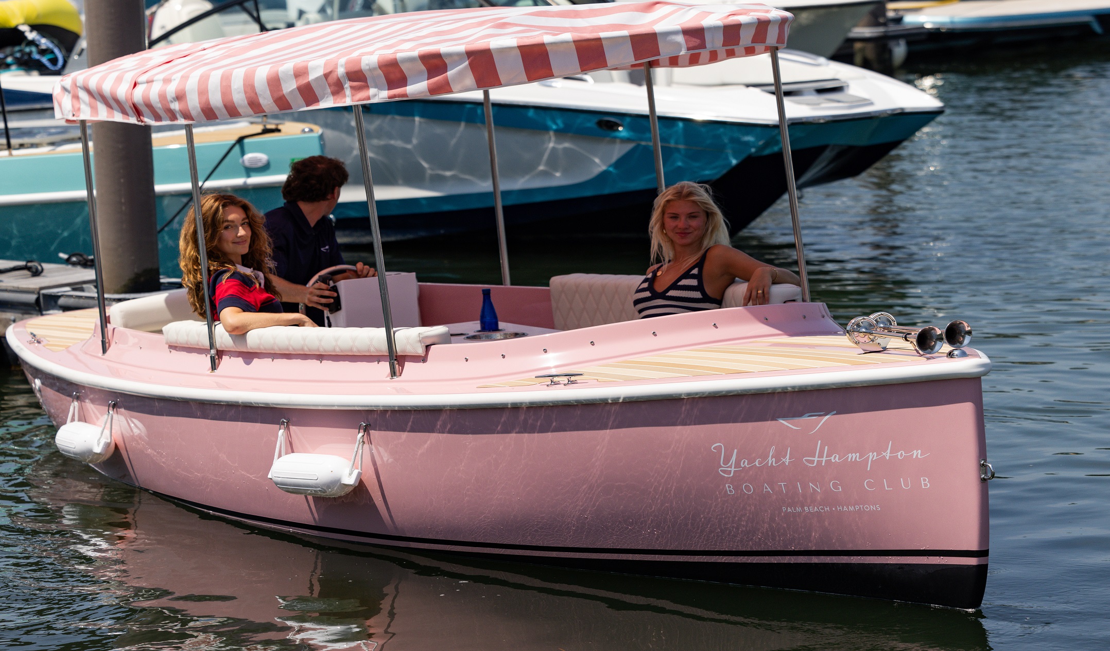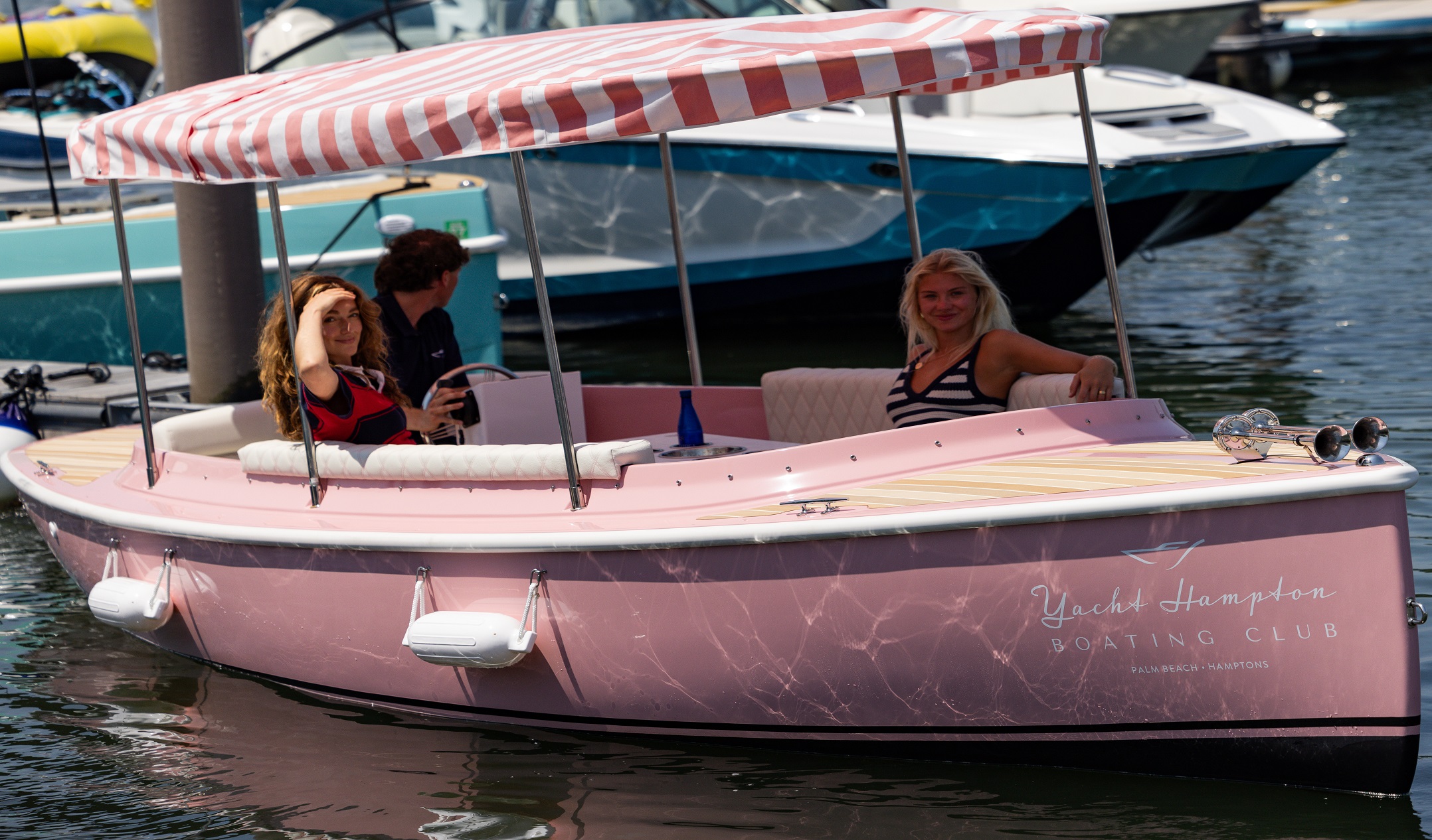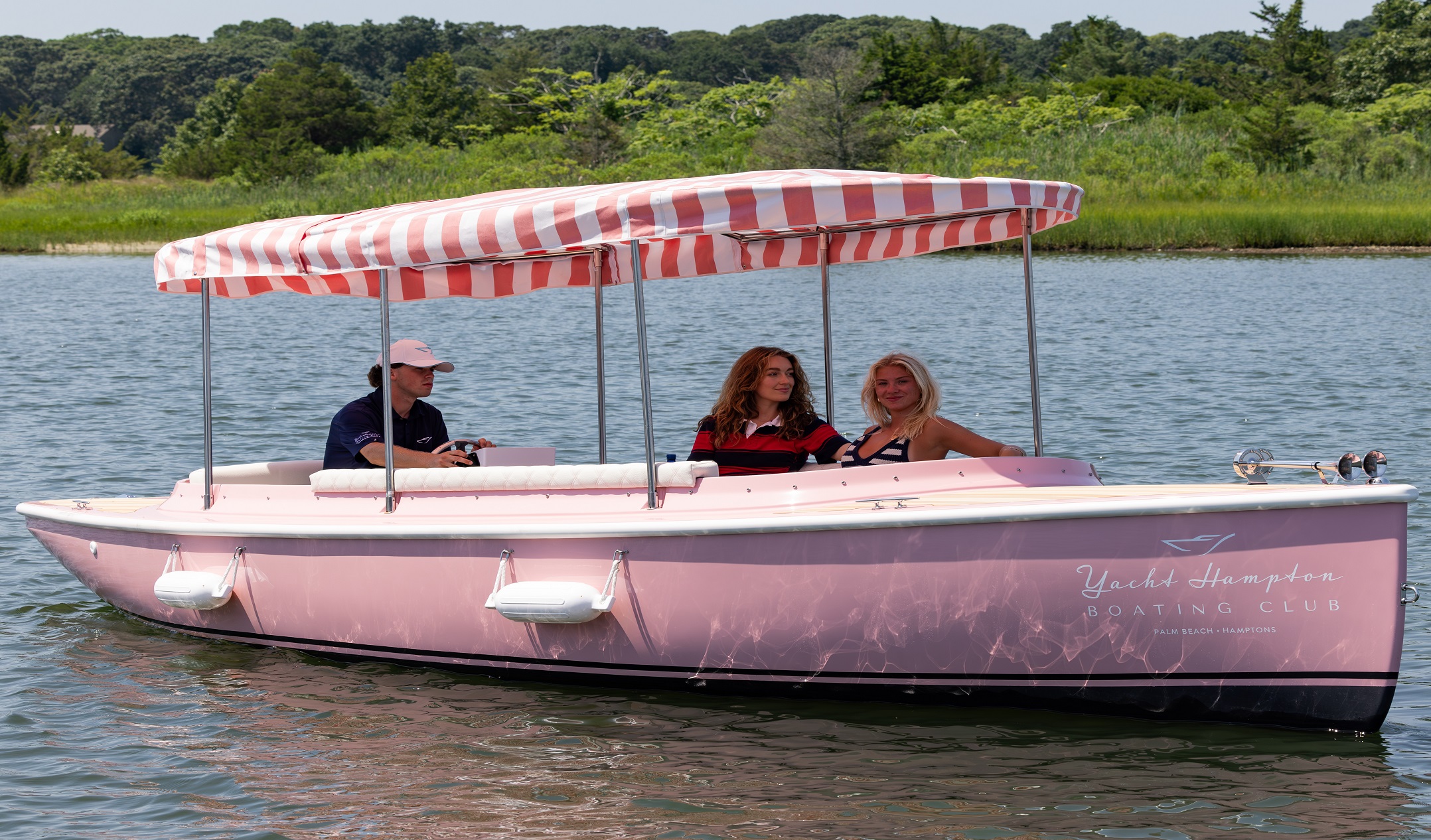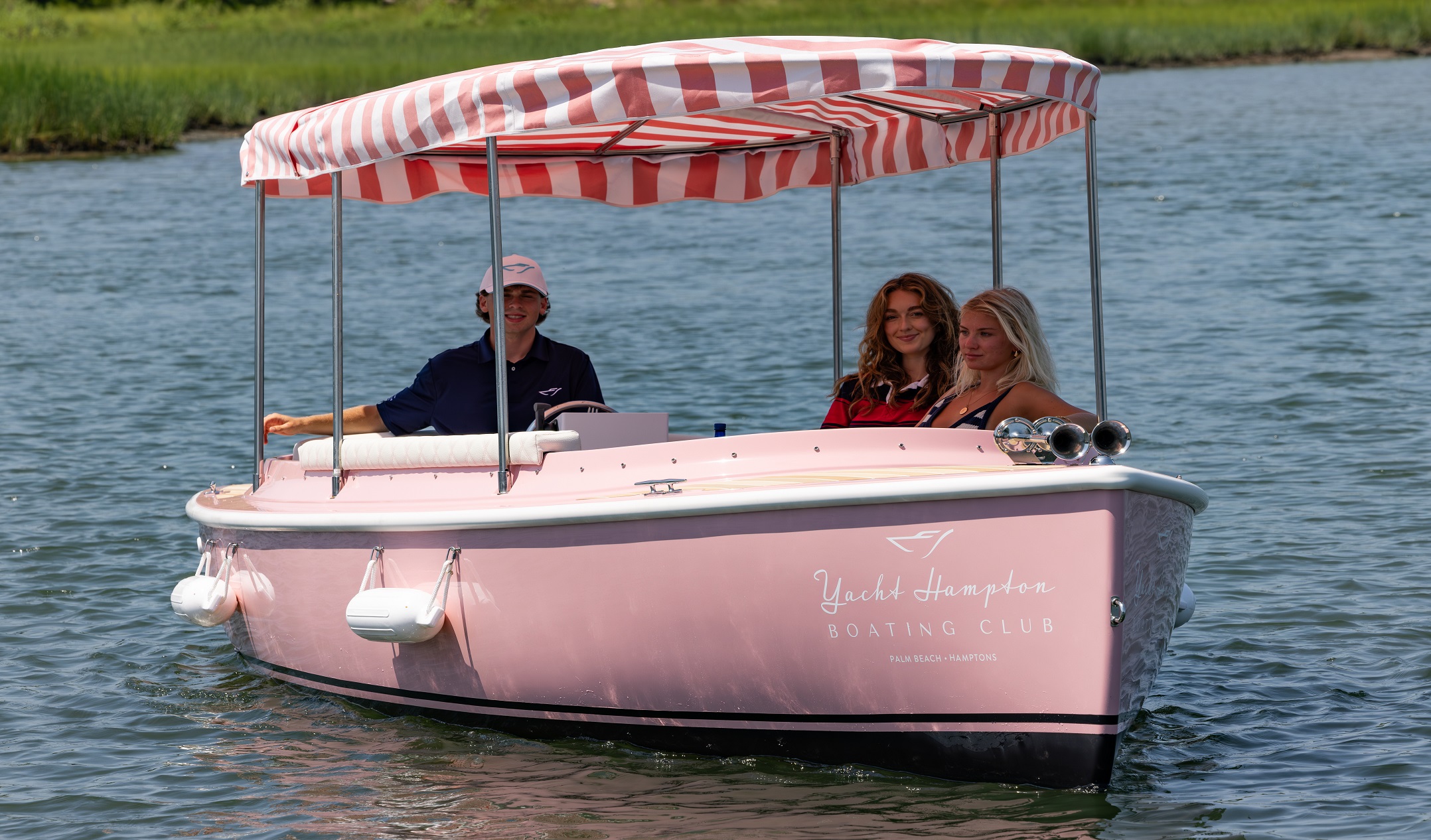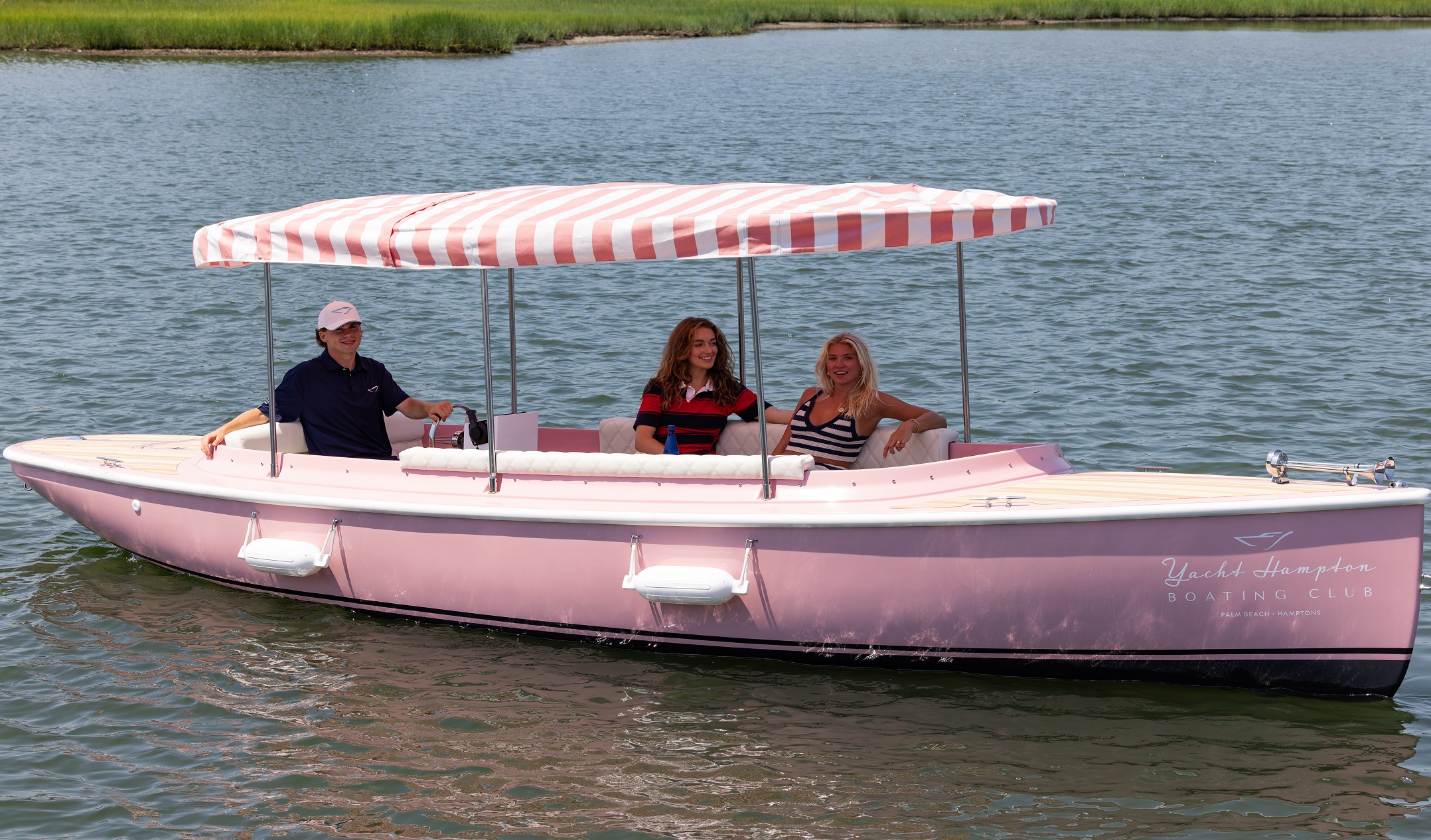 The 22’ 2025 Yacht Hampton Electric boat is a stunning example of modern luxury combined with eco-conscious design. This watercraft boasts an iconic pink exterior, with a spacious deck layout that provides ample seating for passengers to relax and converse while enjoying the serene beauty of the Sag Harbor waters. The electric propulsion technology utilized in the 217 Fantail ensures a quiet and smooth ride, allowing passengers to glide effortlessly through the water without disturbing the peace of their surroundings.