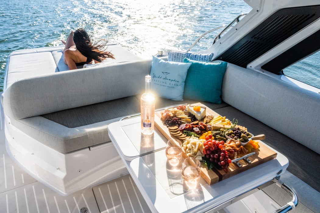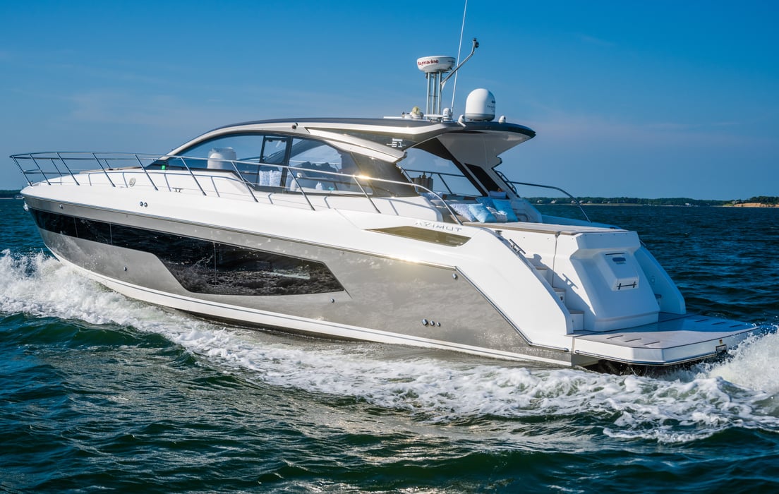 “The 51′ 2022 Azimut Atlantis’s sleek design and contemporary lines seamlessly blend expert craftsmanship with exceptional performance on the water. The expansive cockpit boasts a generous seating area and a well-equipped wet bar, perfect for social gatherings or admiring the sunset on the horizon. A retractable hardtop roof offers versatility, providing shade or an open-air experience. This stylish Italian yacht allows guests to soak up the sun on either the bow or stern sun pads.