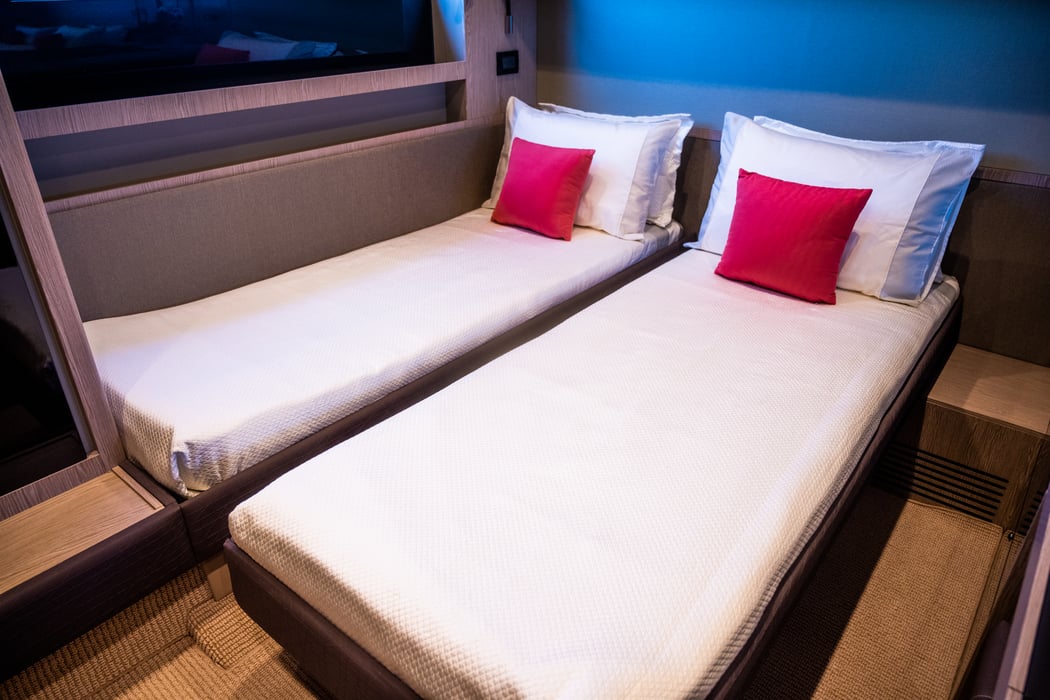 Step inside the 51′ 2022 Azimut Atlantis to discover a tastefully designed interior featuring high-quality finishes and materials. The salon is flooded with natural light, offering panoramic views through large windows. The well-appointed galley and dining area provide all the amenities necessary for preparing and enjoying meals onboard. The accommodations include three comfortable cabins, including a luxurious full-beam master suite. High-speed Starlink internet is also included to keep guests connected if needed. Whether cruising along the coast or venturing offshore, this yacht promises a smooth and enjoyable ride. The 51′ 2022 Azimut Atlantis is a striking luxury sport cruiser that perfectly combines style, comfort, and performance.